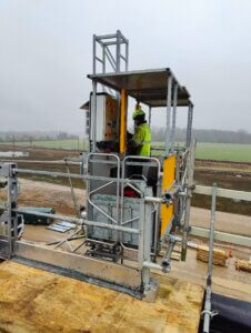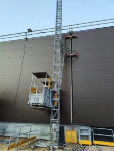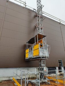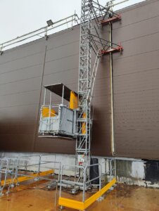 12 km udenfor Næstved tager et ambitiøst projekt form under ledelse af MT Højgaard Danmark. Udviklingen af DSB’s fremtidige klargøringscenter stod over for en væsentlig logistisk udfordring: sikker og effektiv transport af byggematerialer og håndværkere til bygningens tag. MT Højgaard, en førende aktør inden for bygge- og anlægsbranchen, stod over for en betydelig logistisk udfordring i et af deres nyeste projekter. Projektet krævede hyppig og effektiv adgang til bygningens tag for både personale og materialer. Givet bygningens imponerende længde, var der en klar risiko for, at transporten af materialer og værktøjer til taget ville blive både tidskrævende og ineffektiv. Dette kunne potentielt føre til forsinkelser i projektets tidsplan og øgede omkostninger.