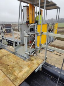 For at tackle denne udfordring hovedkulds, besluttede MT Højgaard at implementere en innovativ løsning. Valget faldt på installationen af en 850 kg materialeplatform, som var designet til at sikre hurtig, nem og sikker adgang til taget for både personale og materialer. Denne løsning var ikke kun praktisk, men også i tråd med virksomhedens engagement i sikkerhed og effektivitet på arbejdspladsen.