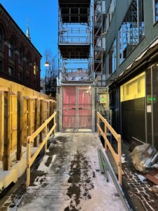 Da hotellet Skt. Petri midt i byens pulserende hjerte stod over for en storstilet renovering, var der brug for et særligt element: et hejs, der skulle være både kraftfuldt og diskret. Hotellets hovedindgang, placeret kun ti meter fra renoveringsstedet, krævede en løsning, der kunne forene funktionalitet med en nærmest usynlig tilstedeværelse.